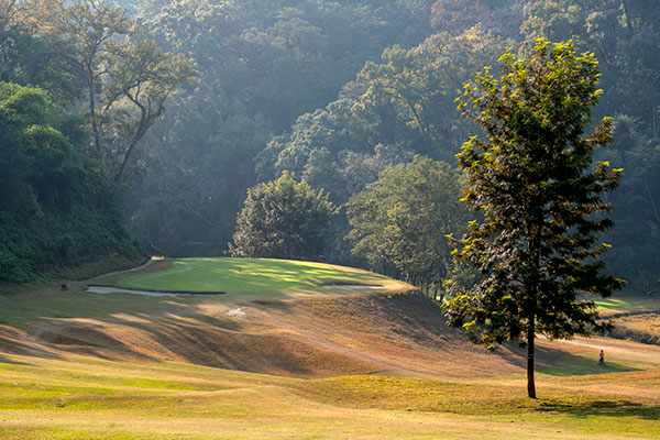 尼泊尔库尔卡森林度假村(Gokarna Forest Resort)位于首都加德满都的东北部。这片山谷原是尼泊尔王室的打猎行宫,现在成为面向游客的国际度假村。占地1.8平方公里、有好几百年历史的库尔卡森林是度假村的天然法宝,打球时,小鹿踱步、神猴凝视常有;更奇妙的是,在山林间挥杆,你可以近距离感觉到喜马拉雅山的呼吸。